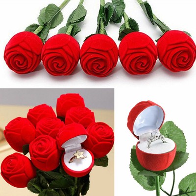 1pcs Velvet Red Rose Flower Shaped Ring Boxs Retail Store